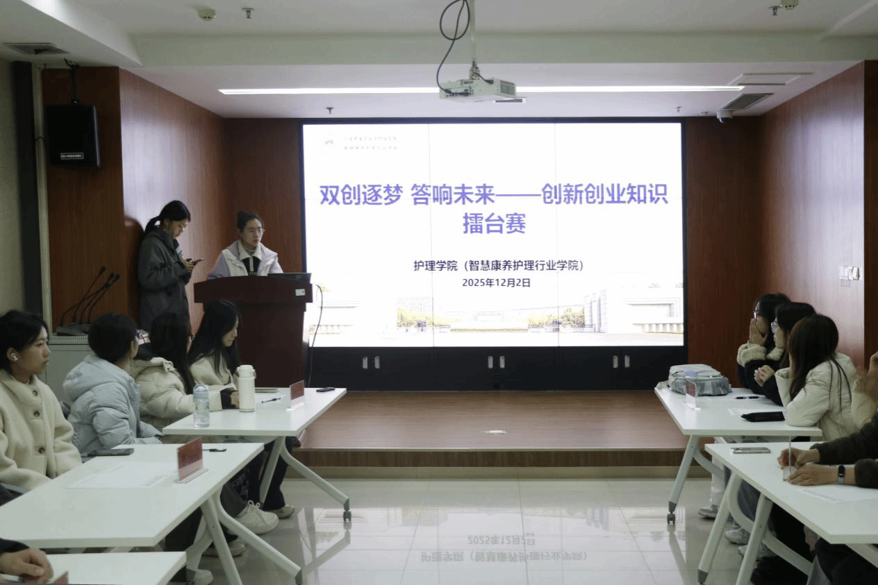 本网讯(文/张澍 图/魏卓妍)为激发护理学子的创新创业热情,推动专业知识与创业实践有机融合,2025年12月2日,护理学院(智慧康养护理行业学院)于实验楼BM709教室成功举办“双创逐梦,答响未来”创新创业知识竞赛。本次竞赛面向全院学生,共吸引8支队伍、24名选手组队参与。
