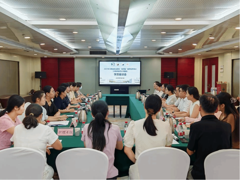 本网讯(文/张勇勤 图/周雨洁)2025年7月29日下午,河南中医药大学在河南明珠大酒店六楼会议室召开了“双师型”教师培养培训基地学员座谈会。河南中医药大学护理学院(智慧康养护理行业学院)院长秦元梅、基地办副主任张勇勤、班主任邹小燕和潘兰霞、一附院药学部与护理部相关管理人员及“双师型”教师培养培训班17名学员代表参加了座谈会。会议由基地办副主任张勇勤主持。