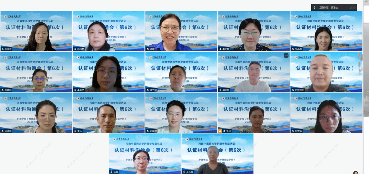 本网讯(文/约提库尔 图/乔漫洁)2025年8月4日下午,护理学院(智慧康养护理行业学院)通过腾讯会议召开护理学专业认证材料沟通会(第六次),学院领导班子、认证专班人员及各教研室负责人参加会议。会议由护理学院(智慧康养护理行业学院)院长秦元梅主持。
