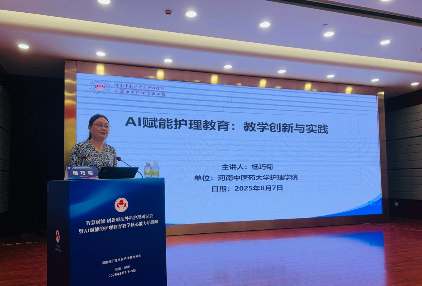 本网讯(文/乔娟 图/杨巧菊)8月7日至9日,由河南省护理学会主办的“智慧赋能·创新驱动外科护理研讨会暨AI赋能的护理教育教学核心能力培训班”在郑州嵩山饭店召开。河南中医药大学护理学院专业负责人杨巧菊教授、教学办主任宋晓丽、教师乔娟及学院研究生代表参会交流,共同探讨AI时代护理教育创新发展路径。